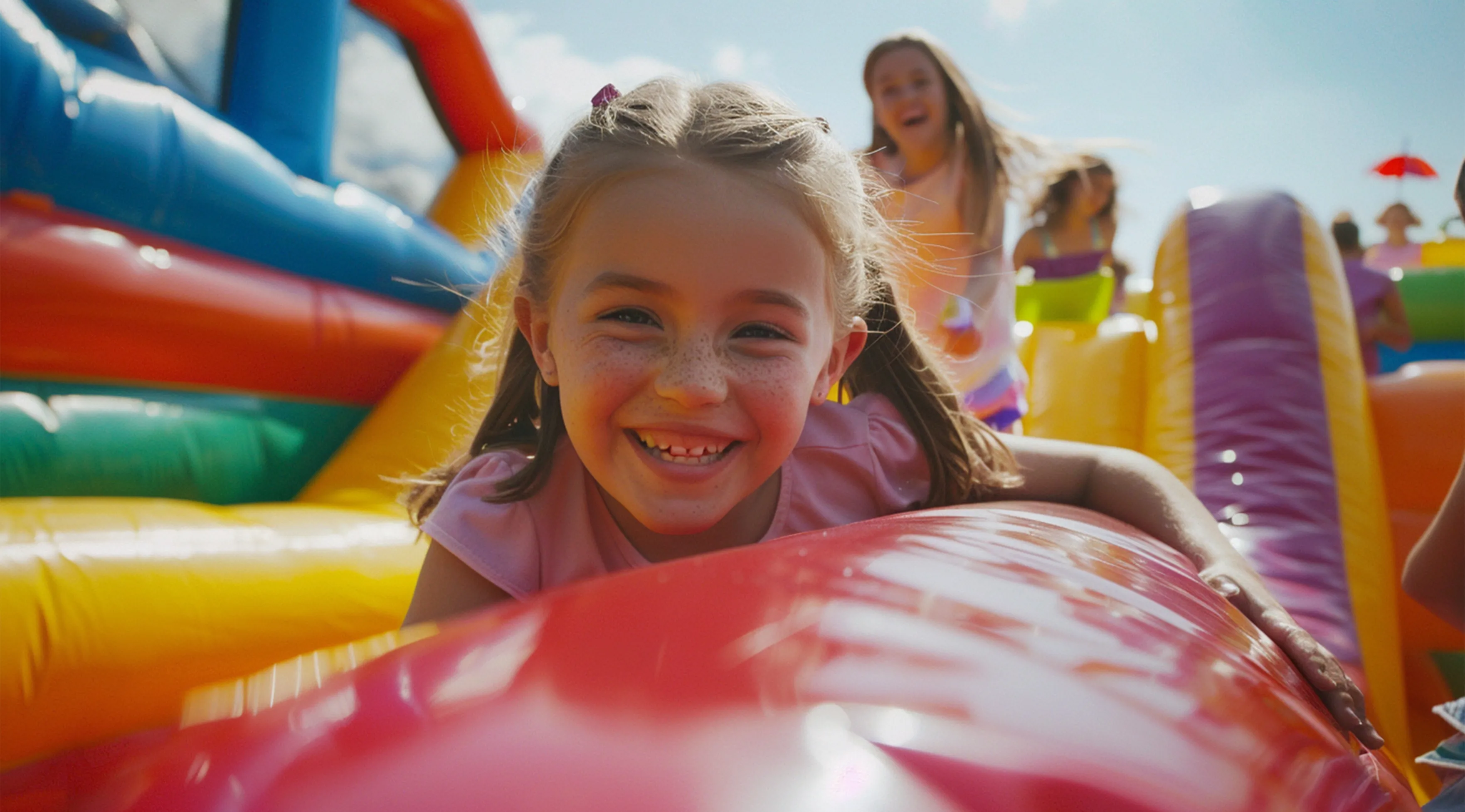 Nos forfaits pour fêtes d’enfants sont personnalisables selon vos besoins ! Ils peuvent inclure des jeux gonflables, des tables et chaises, un canon à mousse, une mascotte et plus encore. Créez la fête parfaite pour votre enfant !